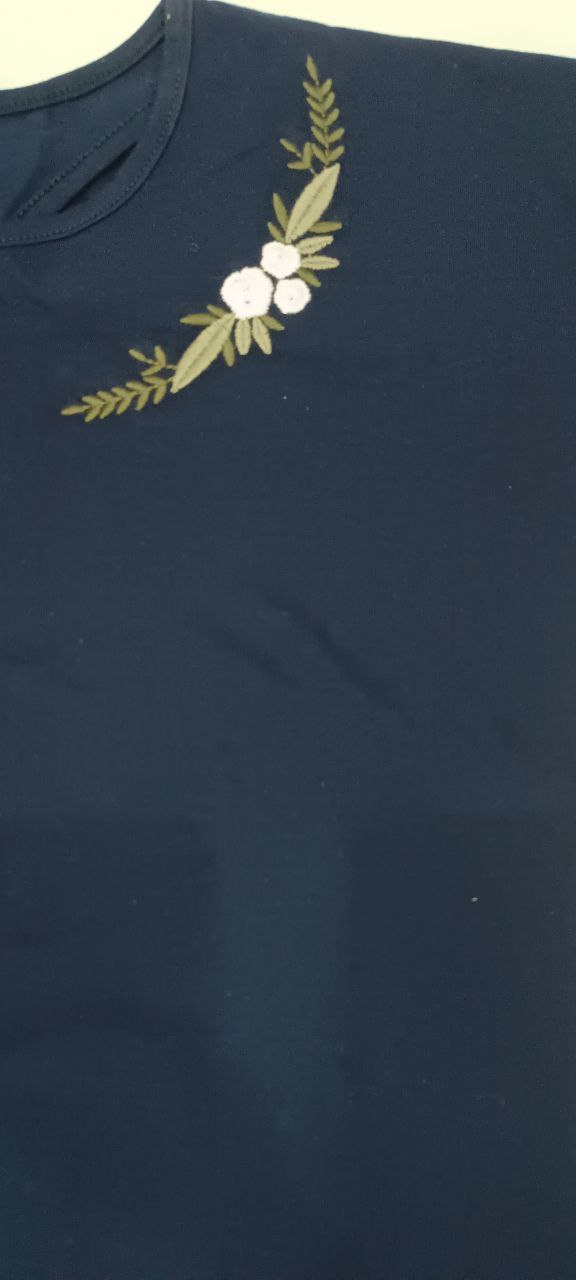 - گلدوزی بسیار زیبا و ظریف: طرح شاخه گل که به تاپ جلوهای لوکس و هنری میبخشد و آن را از یک لباس ساده متمایز میکند.