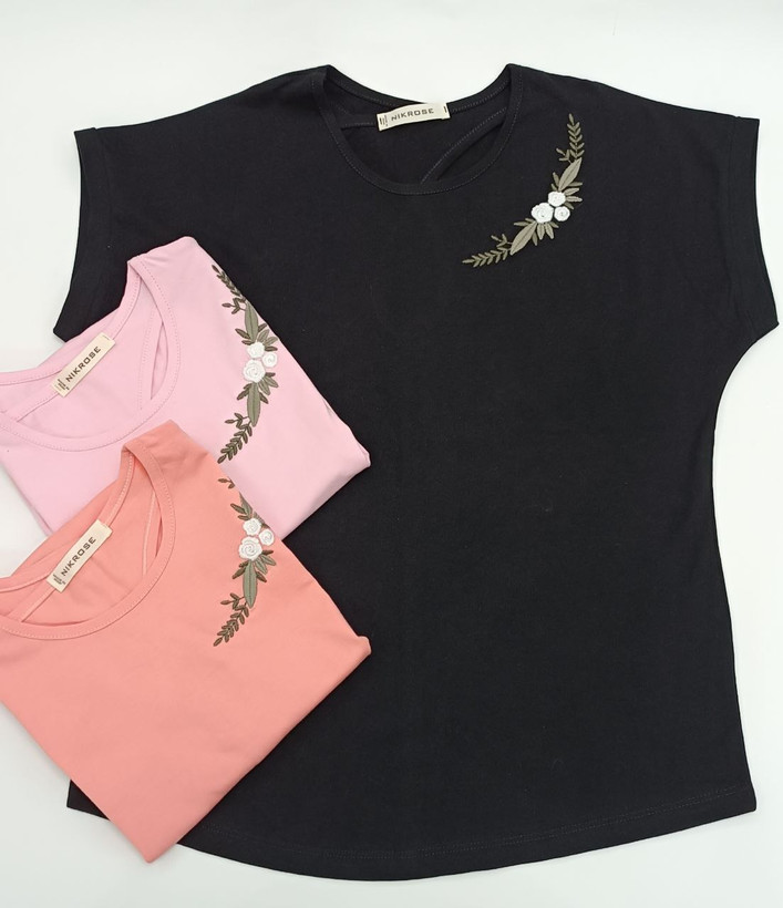 💖 لطافت نخ پنبه و زیبایی گلدوزی با تاپ آستین سرخود MIKROSE