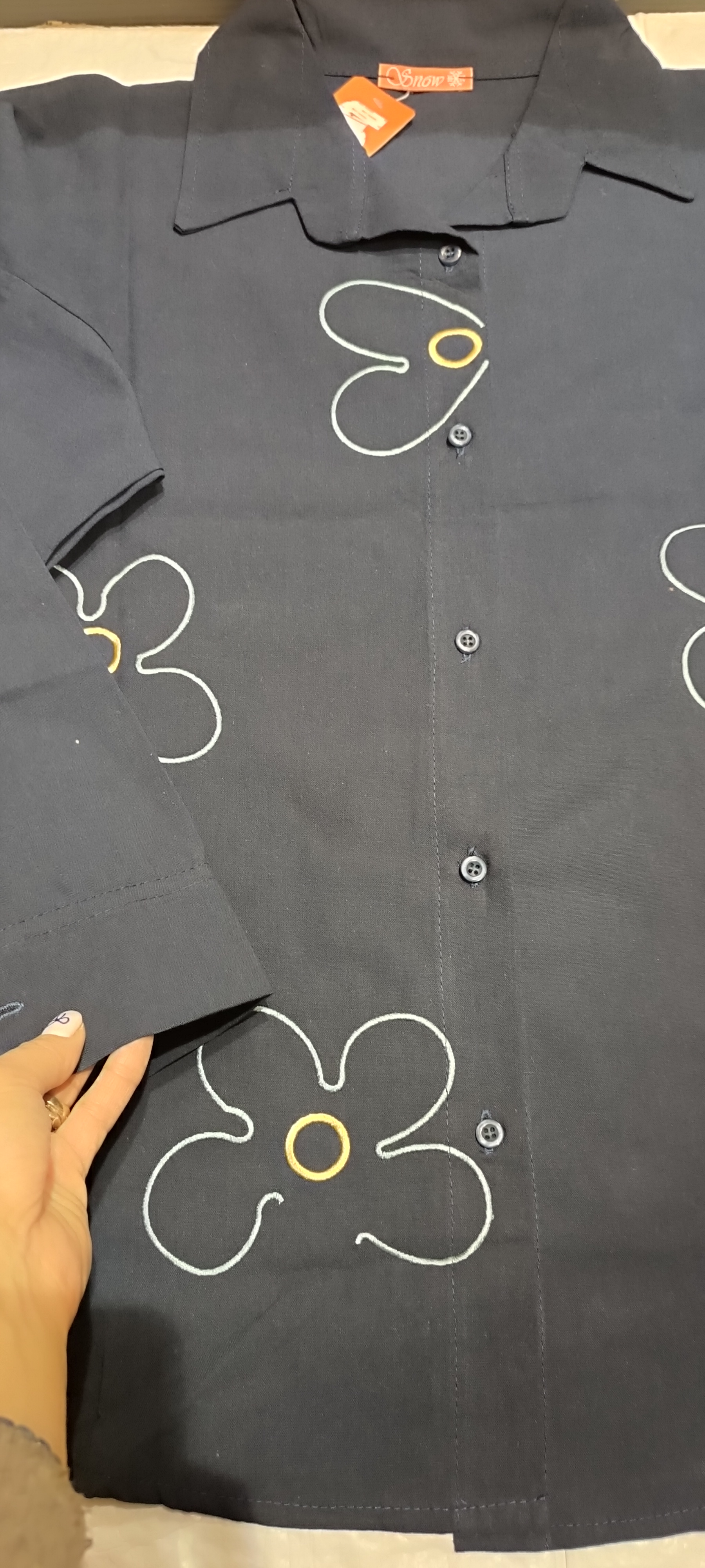 شومیز مانتویی کتان فری سایز مناسب تا ۴۴,۴۶ گلدوزی شده